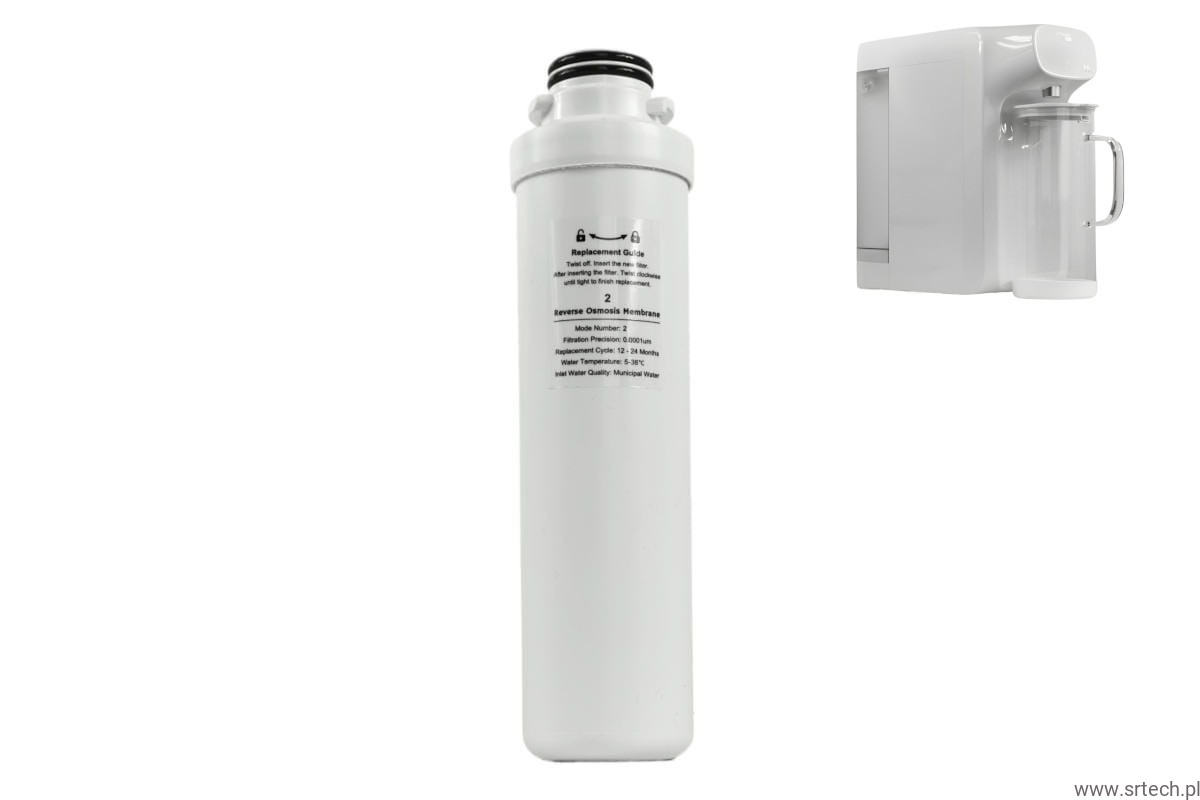 Filtr 2 z membraną RO (odwrócona osmoza) do systemu filtrującego wodę SRT Hydro Mini. Zaleca się wymianę wkładu po 2 latach.